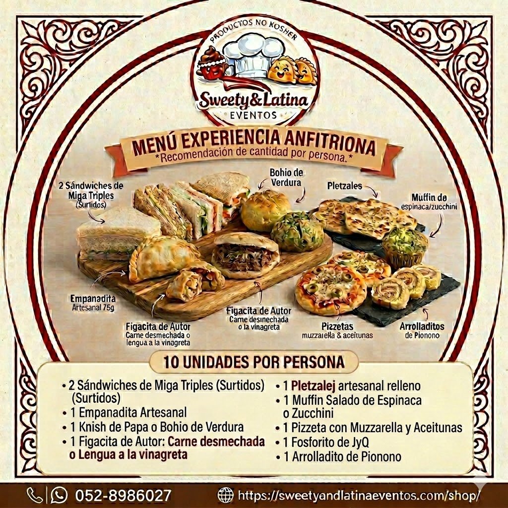 «Ofrecemos la mejor solución de Catering salado en Ashkelon para tu evento. ¡Olvidate de calcular cantidades! Hemos diseñado este menú artesanal de 10 unidades por persona, calculado para ofrecer variedad y saciedad. Este producto está diseñado para grupos; el precio es por persona y se requiere un pedido mínimo de 10 porciones.»